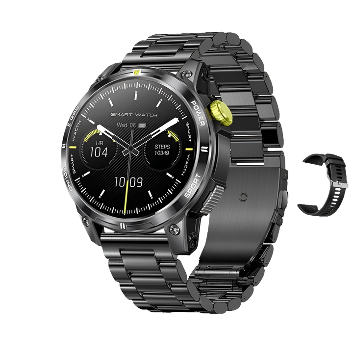 La Nouvelle Montre Connectée : Plus Grand, Plus Fort, Plus Puissant ! Découvrez une montre conçue pour l'aventure et la performance. Lunette Renforcée :Alliage métallique durable avec indice d'étanchéité IP68. Résistante à la poussière et aux rayures, elle est prête à affronter tous les défis. GPS, Boussole et Baromètre Améliorés :Profitez d'une plus grande précision pour vos explorations et activités en plein air. Appels au Poignet + Assistant Vocal :Répondez et passez des appels en toute simplicité, directement depuis votre poignet. Laissez votre assistant vocal vous simplifier la vie. Écran 25% Plus Grand :Bénéficiez d'une facilité d'utilisation et d'une clarté améliorées pour une expérience utilisateur optimale. Surveillance du Bien-Être 24h/24 et 7j/7 :Accédez à des informations complètes sur votre santé et votre activité physique pour un suivi personnalisé.